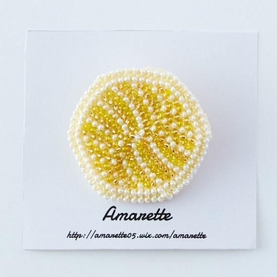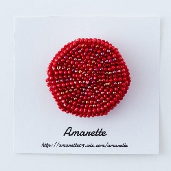 アーティスト"Amarette"のビーズを編みこんだビーズクロッシェのブローチです。
