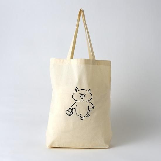 This eco-friendly bag is printed with an illustration of a pig going out, drawn by the artist.