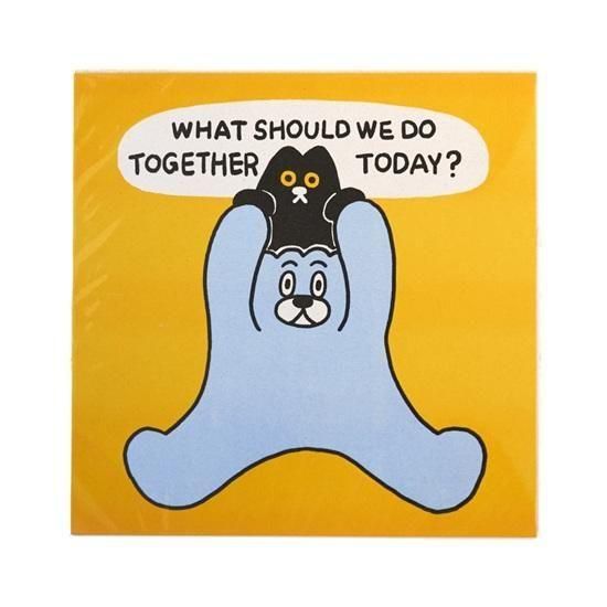 アーティスト"餃貓 FAMILY"の描く「WHAT SHOULD WE DO TOGETHER TODAY ?」がリソグラフでデジタルプリントされたポスターです。